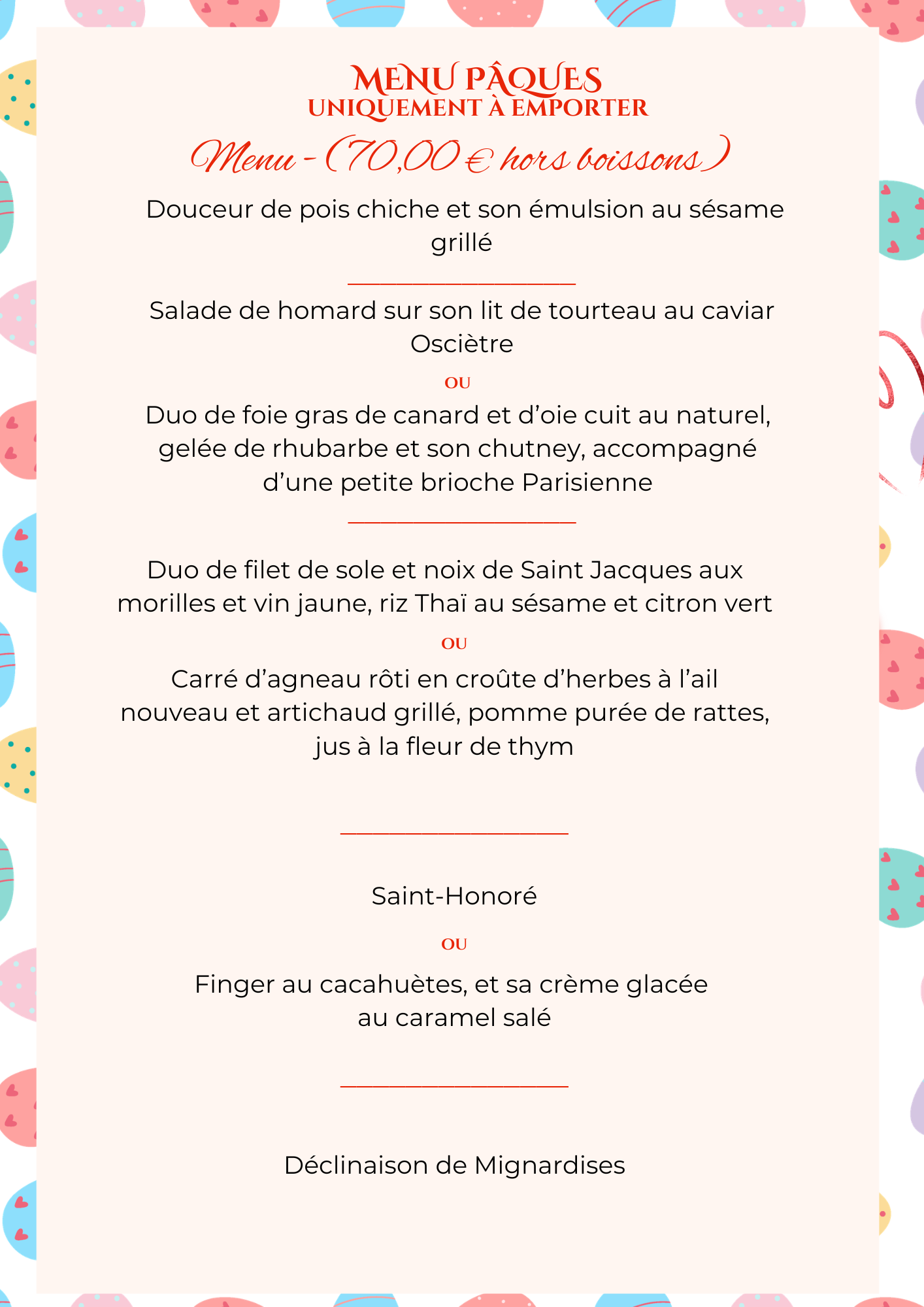 Menu Pâques 2026